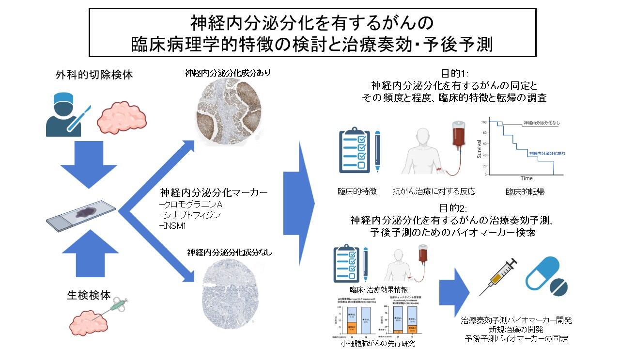 この研究は、病勢が比較的急速で、かつその希少性から標準治療が確立されていない、神経内分泌分化によって特徴づけられているがんに関して、その臨床病理学的特徴を明らかにすることで、その病態の解明と新規治療法の開発に貢献することを目標している研究です。