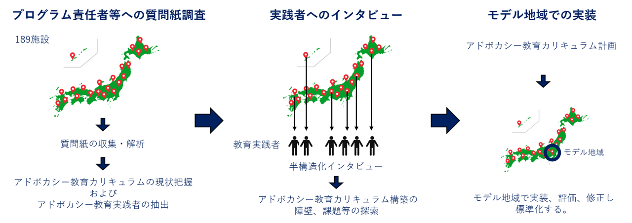 さらに、その結果をもとに、日本の医療現場や地域の実情、文化的背景に適したアドボカシー教育のあり方を検討します。将来的には、モデル地域での試行と改善を重ね、実践的かつ継続性のあるアドボカシー教育の標準化を目指します。